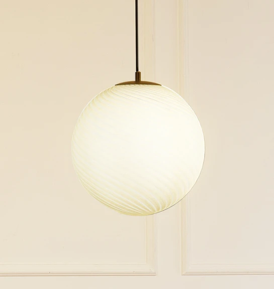 Einflammige Hängeleuchte Kestralia mit kugelfäörmigem Schirm aus weißem Glas