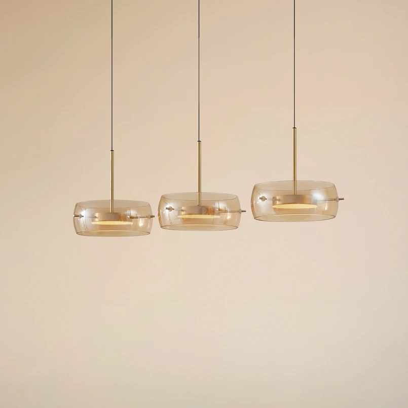 Die LED-Hängeleuchte Martis besticht durch ihr modernes Design und die Verwendung von langlebigen Materialien wie Metall und Glas. Mit ihrer dreiflammigen Konstruktion und der eleganten Farbgebung in Schwarz, Messing und Amber fügt sie sich nahtlos in zeitgemäße Wohn- und Esszimmer ein. Die integrierte LED-Lichtquelle sorgt für energiesparendes Licht und eine angenehme Atmosphäre, die durch die warmweiße Lichtfarbe von 3.000 K unterstrichen wird.