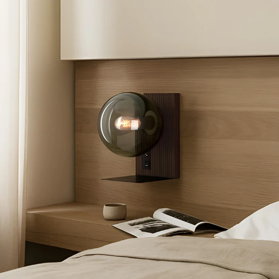 Wandleuchte Veloura mit einem Glasschirm und einer USB-Ladebuchse