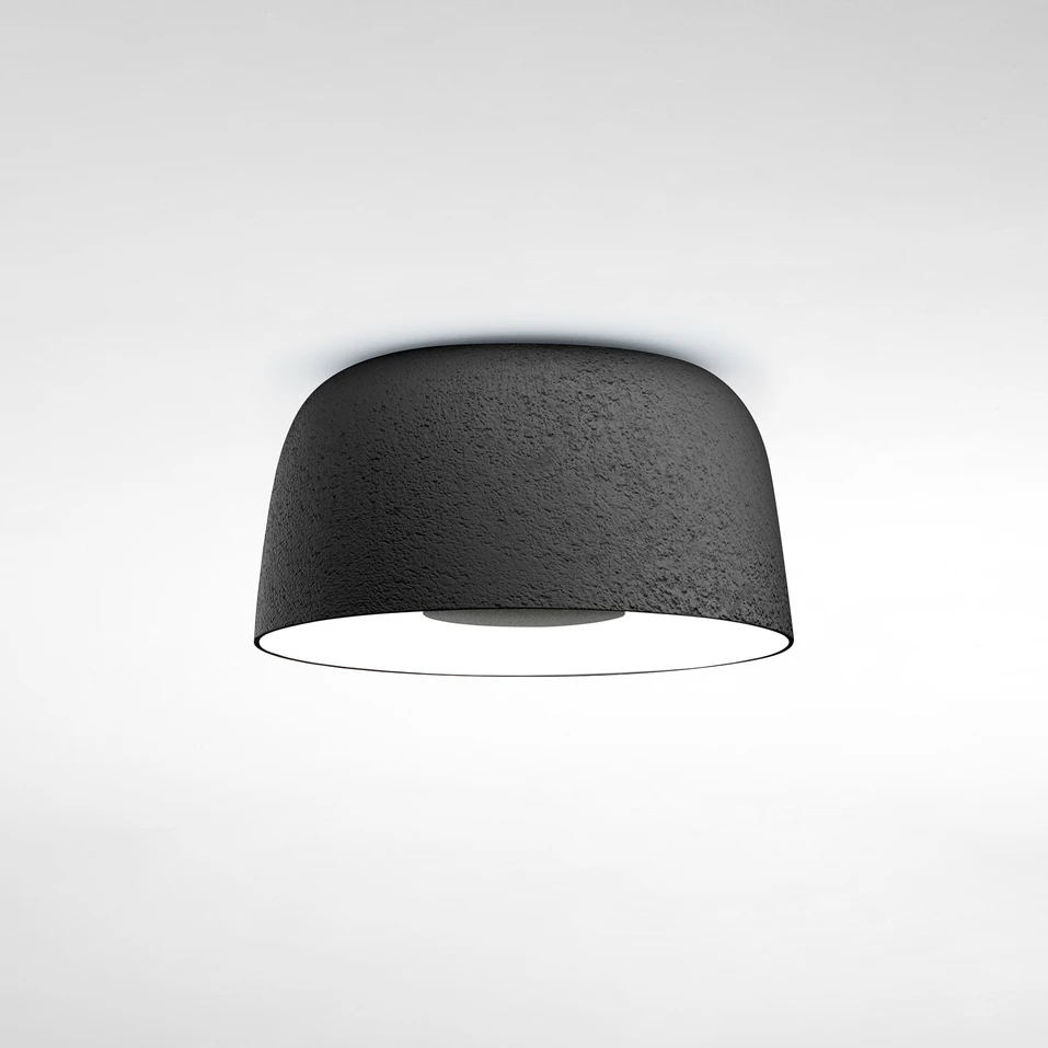 Die in Form einer Glocke gestaltete LED-Deckenleuchte Djembé C 42.21 beweist auf harmonische Weise, dass große und vermeintlich schwere Leuchten mit Eleganz glänzen können. Neben dem imposanten Volumen unterstützt eine strukturierte, Gestein ähnelnde Oberfläche außen die stattliche Erscheinung. Gänzlich glatt und weiß präsentiert Djembé hingegen die Innenseite ihres Schirms, die das Licht sehr gut reflektiert und für eine gute Beleuchtung auch in weitläufigen Räumen sorgt. Daher empfiehlt sie sich auch für die Anwendung im öffentlichen Bereich.