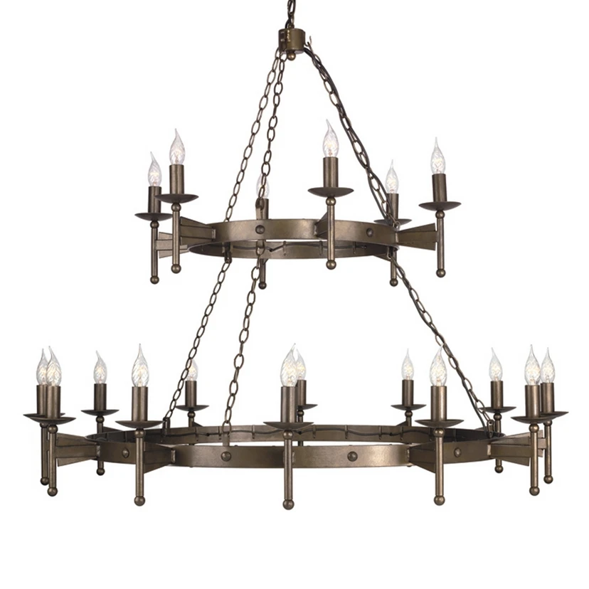 Zweistufige Hängeleuchte Cromwell – mittelalterliche Opulenz aus Schmiedeeisen