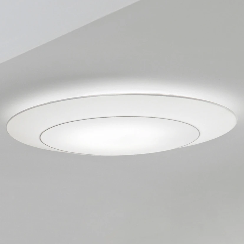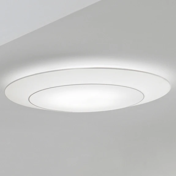 Mit der LED-Deckenlampe Ring Tonda lassen sich Wohn- und Schlafräume privater Natur oder auch im Hotel wirkungsvoll ausleuchten. Optisch wirkt Ring Tonda nahezu wolkengleich, denn der weiße Stoff des Schirms, der auf ein Metallgerüst gezogen wurde, besteht aus dem leicht glänzenden, etwas dehnbaren Stoff Lycra. In Kombination mit dem hellen Licht der leistungsstarken LEDs entsteht eine fabelhafte Lichtwirkung.