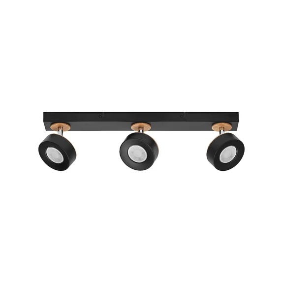 LED-Deckenstrahler Pluto mit drei Spots und Holzdetails