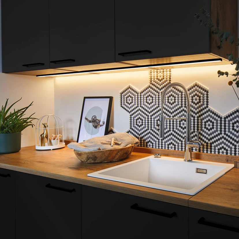 An Möbeln oder Wänden ermöglicht dieses Aluminiumprofil eine homogene Ambientebeleuchtung. Es lässt sich mit einem MaxLED LED-Strip bestücken und bietet durch den satinierten Kunststoffdiffusor eine besonders gleichmäßige Lichtabgabe. Das robuste Aluminiumprofil ist in mattem Schwarz lackiert.