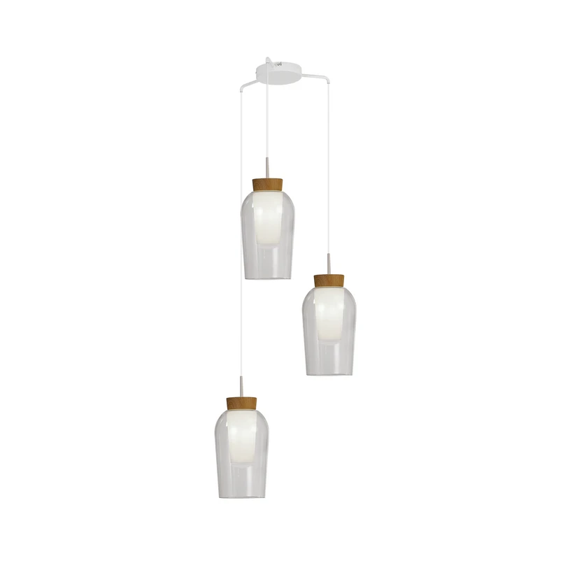 Pendelleuchte Nora, weiß, transparent 3-flammig, rund, Glas