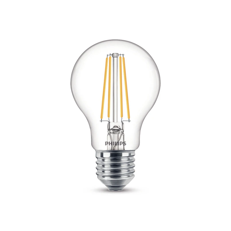 Dieses LED-Leuchtmittel A60 mit E27-Sockel ersetzt herkömmliche Glühlampen mit 60W. Durch den klaren Kolben wird das universalweiße Licht homogen zu allen Seiten ausgestrahlt.