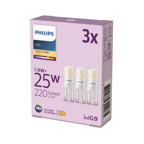 Philips LED-Stiftsockellampe G9 1,9W 220lm 2700K matt 3er
