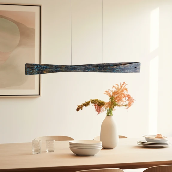Das warme Licht wird Richtung Boden und zur Decke abgestrahlt, wodurch ein schönes Lichtspiel entsteht. Die unter der Leuchte liegende Fläche wird so mit direktem Licht versorgt, während das nach oben strahlende Licht für angenehme indirekte Helligkeit sorgt. Mit einem externen Phasendimmer ist es zudem möglich, die Hängeleuchte zu dimmen. Außerdem lässt sich die Höhe der Leuchte variieren.