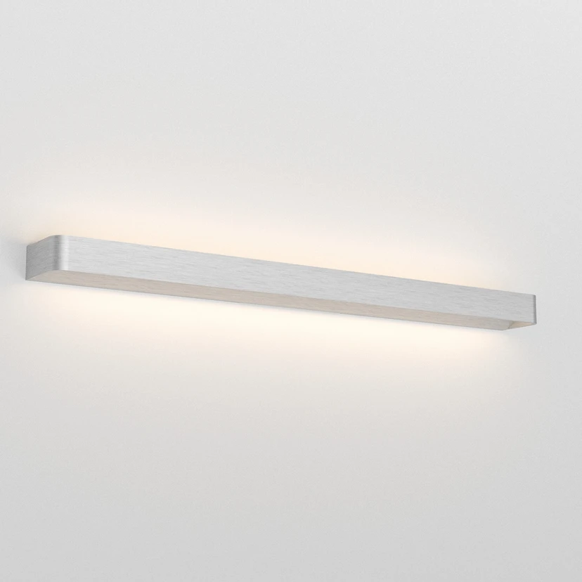 Die LED-Wandleuchte fällt auf: einerseits durch ihre Breite, andererseits durch ihr modernes Design sowie durch das sowohl aufwärts als auch abwärts strahlende Licht, das gleichzeitig für eine direkt nach unten gerichtete Zusatzbeleuchtung als auch für ein behagliches Ambiente sorgt. Ihr Schirm besteht komplett aus stranggepresstem Aluminium und ist in zwei Elemente aufgeteilt. Das äußere Element ist ringförmig gestaltet, das innere Element lenkt das Licht der verbauten LEDs symmetrisch nach oben und nach unten.