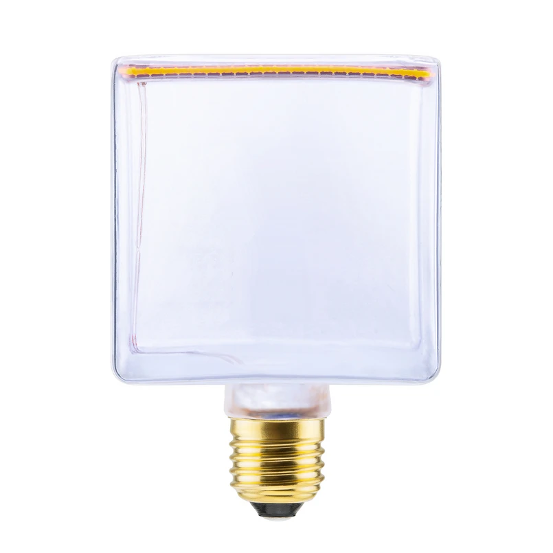 Die außergewöhnliche Gestaltung in Würfelform macht die LED-Lampe Floating-Cube zu einem besonderen Blickfang im Wohnbereich. Die Lampe eignet sich wunderbar für den Einsatz in offenen Leuchten ohne Schirm oder Fassungsleuchten. Die warme Lichtfarbe sorgt zudem für eine angenehme Atmosphäre. Mit einem externen kompatiblen Phasendimmer ist es zusätzlich möglich, die Helligkeit der Cube-Lampe zu variieren.