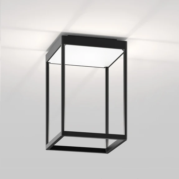 Die LED-Deckenleuchte Reflex² S wurde von Jean-Marc da Costa konzipiert, einem der Gründer und Geschäftsführer von serien.lighting. Ihr offen gestalteter Rahmen mit feinen Streben wird aus Aluminium hergestellt. Die LEDs sind an den Oberseiten der unteren Streben hinter Flachglas integriert und strahlen in Richtung der Decke, wo das Licht auf einen prismatischen Reflektor aus Plexiglas fällt.