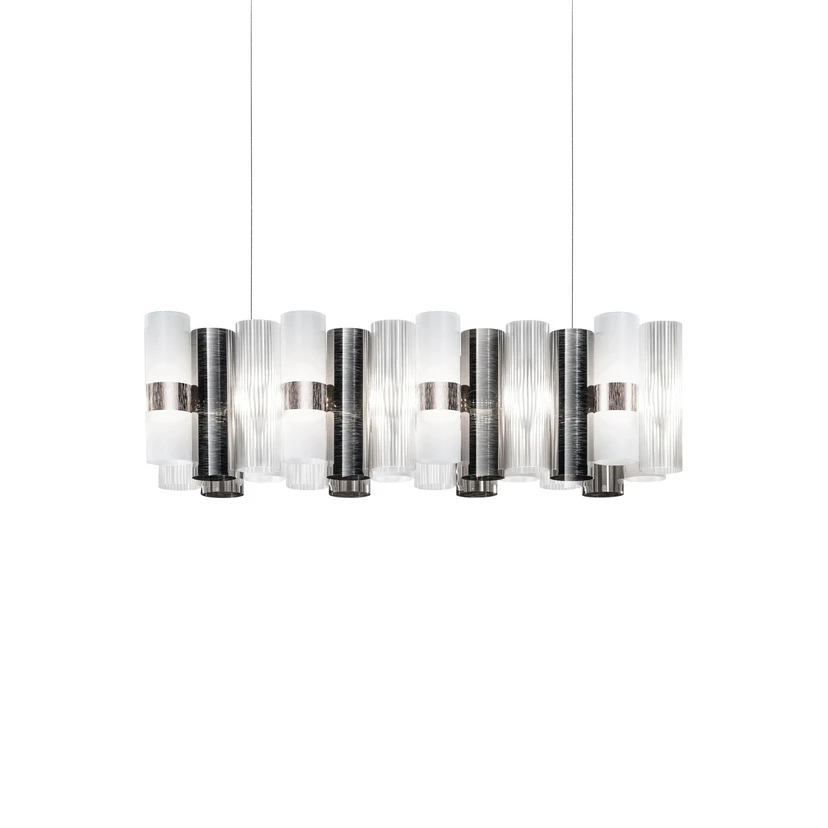 Die LED-Hängelampe La Lollo gehört zu der von Lorenza Bozzoli entworfenen Kollektion. Der Rippeneffekt des Glases wird mit den Technopolymeren von Slamp (Lentiflex® und Opalflex®) erzeugt, die kalt bearbeitet und von Hand geformt werden, um einer statuenhaften, eleganten Leuchte Form zu geben, die sich durch Vielseitigkeit und Brillanz auszeichnet.
