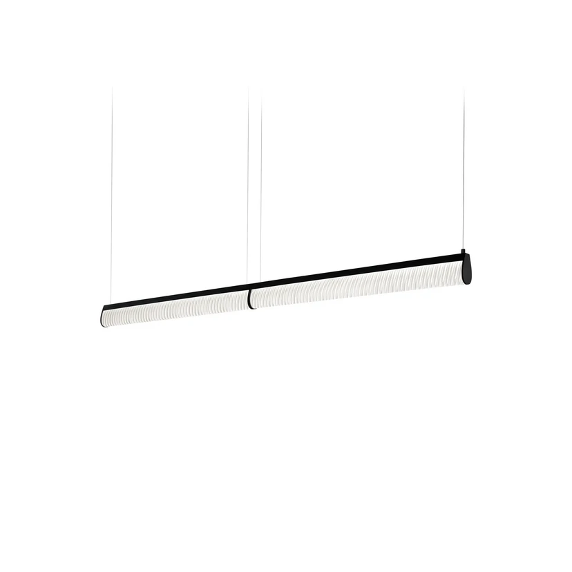 Die LED-Hängeleuchte Modula Double verbreitet eine faszinierende Lichtstimmung. Der Plissé-Effekt, inspiriert von den Säulen mittelalterlicher Klöster, macht die auf den ersten Blick minimalistisch wirkende Pendellampe zu einer wahren Explosion der Kreativität. Eine homogene Lichtlinie läuft an der Rückseite entlang und verstärkt den Schein des Lichts.