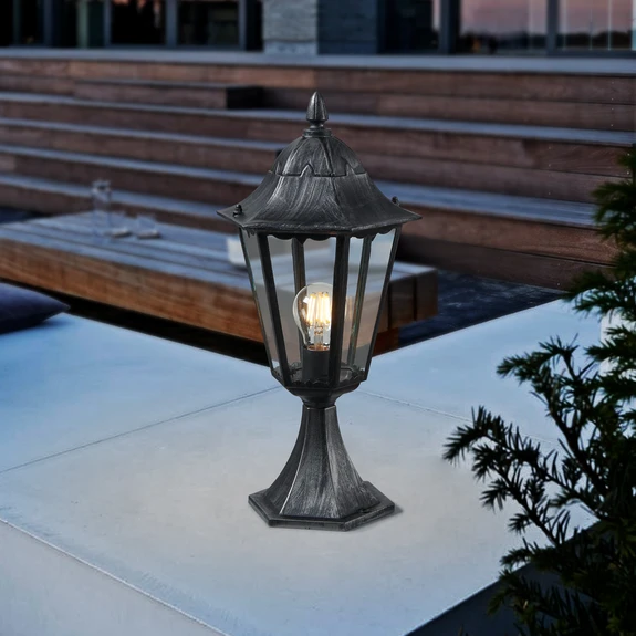 Sockellampe Navedo mit antikem Design und Schutzart IP44
