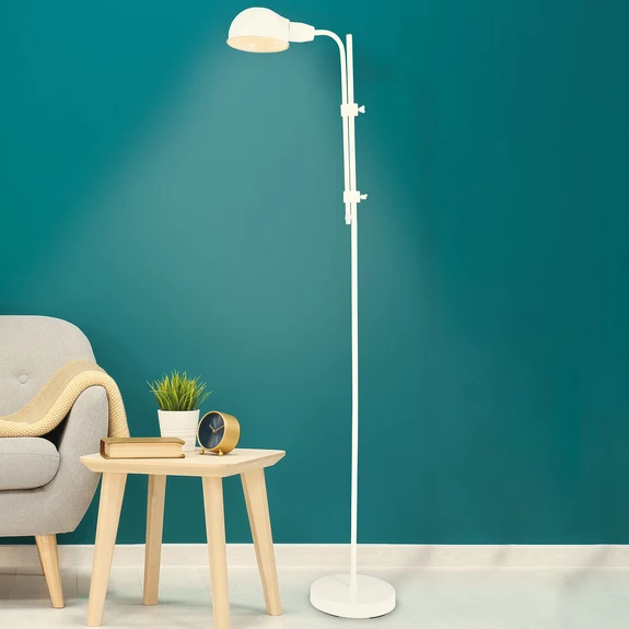 Mühelos und geschmackvoll zeigt sich die Stehleuchte Alani. Dank des nach unten gerichteten Lampenschirms kann sie als Leselicht neben einem Sofa platziert werden oder als zusätzlich Lichtquelle über einem Schreibtisch. Die Leuchte ist sehr praktisch, da ihre Zuleitung eine Länge von 1,5 Metern hat. An dieser befindet sich ein Tippschalter, über den sie sich bequem ein- und ausschalten lässt. Das reduzierte Design mach es möglich, dass die Leuchte sich verschiedensten Wohnkonzepten anpasst und mühelos integrieren werden kann.
