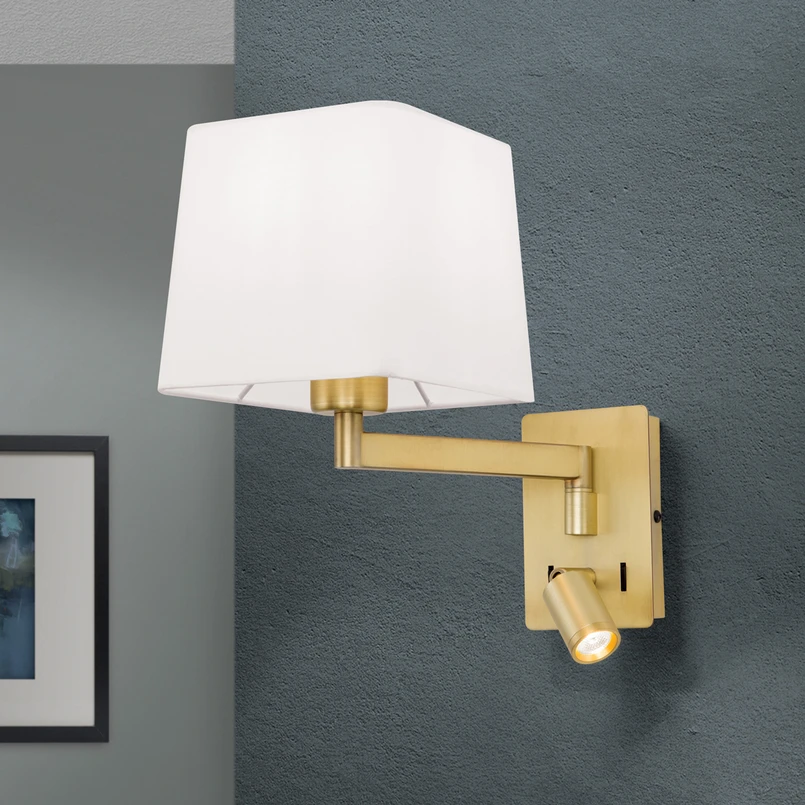 Textil-Wandlampe Carlton, messing matt Lieferzeit: 9 - 13 Werktage