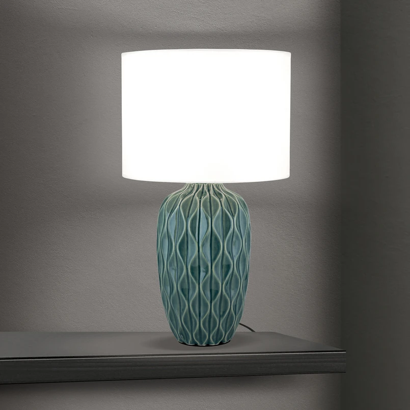 Tischlampe Tortuga, grün/weiß, Höhe 49,5 cm, Keramik/Leinen