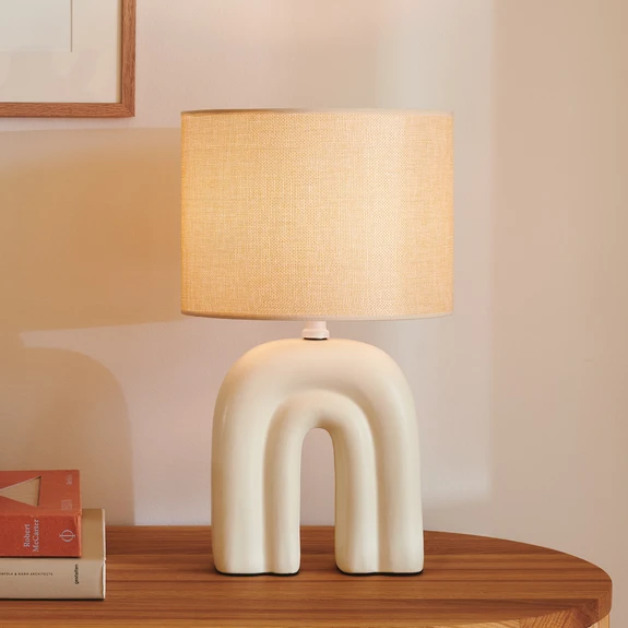 Tischleuchte Haze, Keramik, Leuchtenschirm Textil, beige