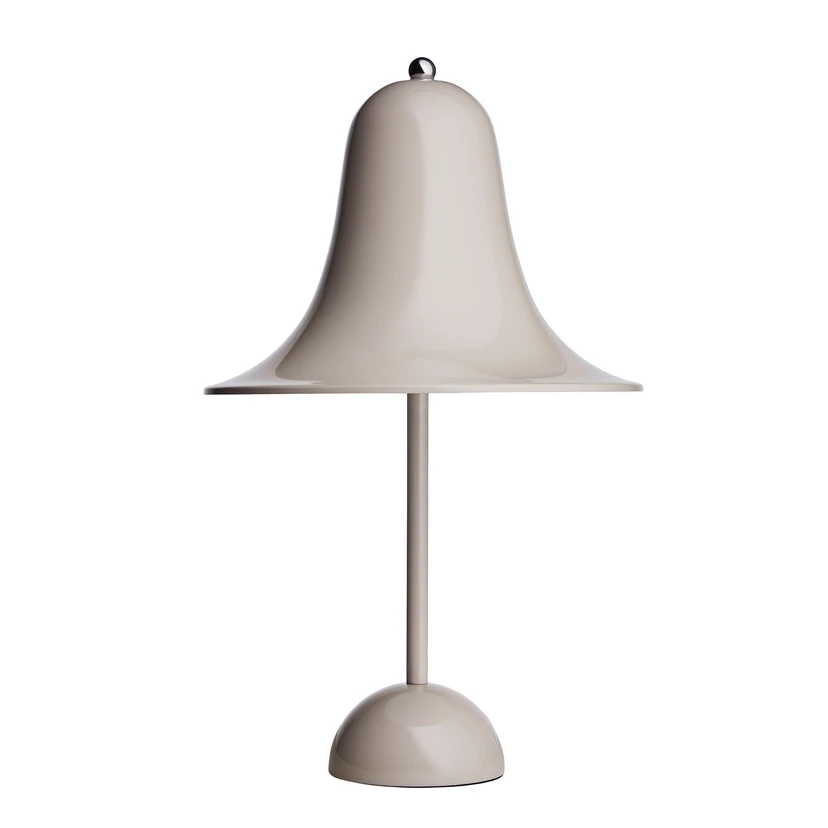Diese schöne Tischleuchte ist Teil der vom dänischen Designer Verner Panton (1926-1998) im Jahr 1980 kreierten Leuchtenserie Pantop. Sie besticht mit einem glockenförmigen Schirm, der das abstrahlende Licht des eingesetzten Leuchtmittels homogen verteilt. Es entsteht eine sehr behagliche Akzentbeleuchtung, die in Wohn- und Schlafräumen ein stimmungsvolles Ambiente schafft. Mit Schalter (ein/aus) am Zuleitungskabel.