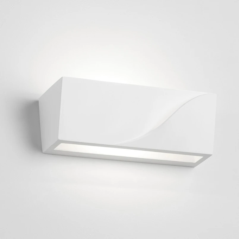 Quadratische Wandlampe Pellene aus weißem Gips zur sanften vertikalen Akzentbeleuchtung
