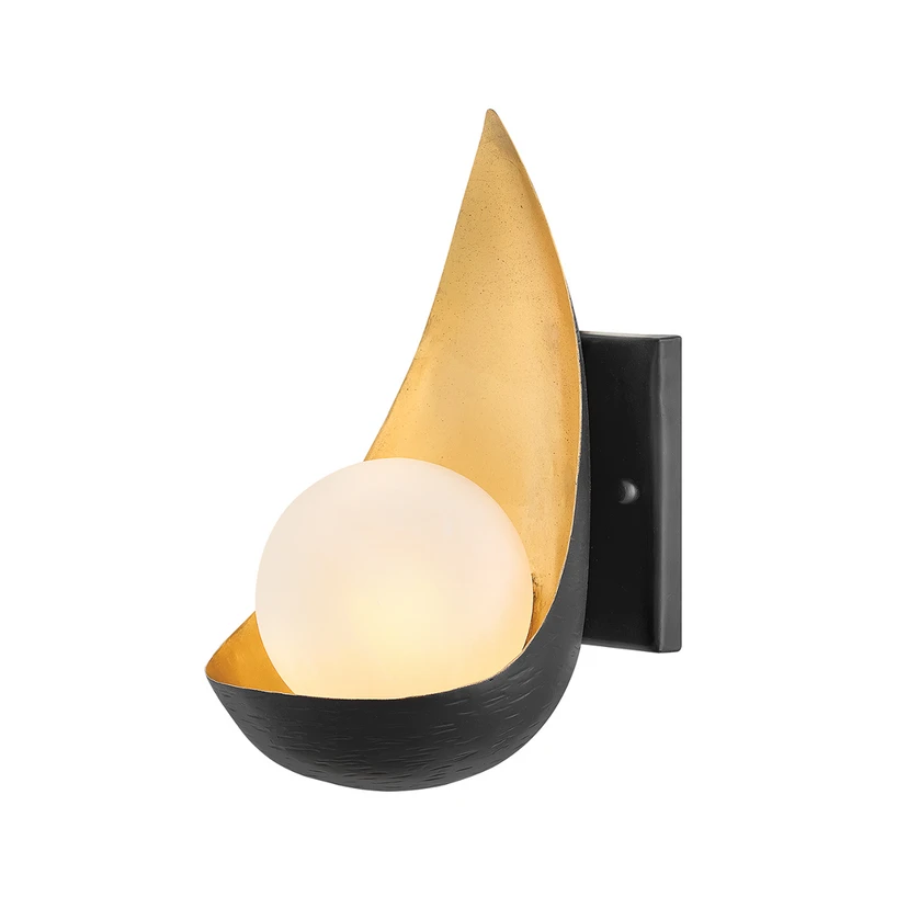 Einen absoluten Hingucker stellt die einflammige Wandleuchte Ren, designt von Lisa McDennon, dar. Ihr Metallschirm hat eine dekorative Flammenform und ist außen matt-schwarz und innen goldfarben lackiert, was den Eindruck einer Flamme noch verstärkt. In der Schale sitzt eine Kugel aus Alabaster-Imitat, die das G9-Leuchtmittel beinhaltet. Ein LED-Leuchtmittel mit G9-Sockel wird mitgeliefert.
